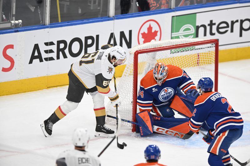 Stone leads the Golden Knights with four playoff goals and is second on the team behind Jack Eichel with eight points.
